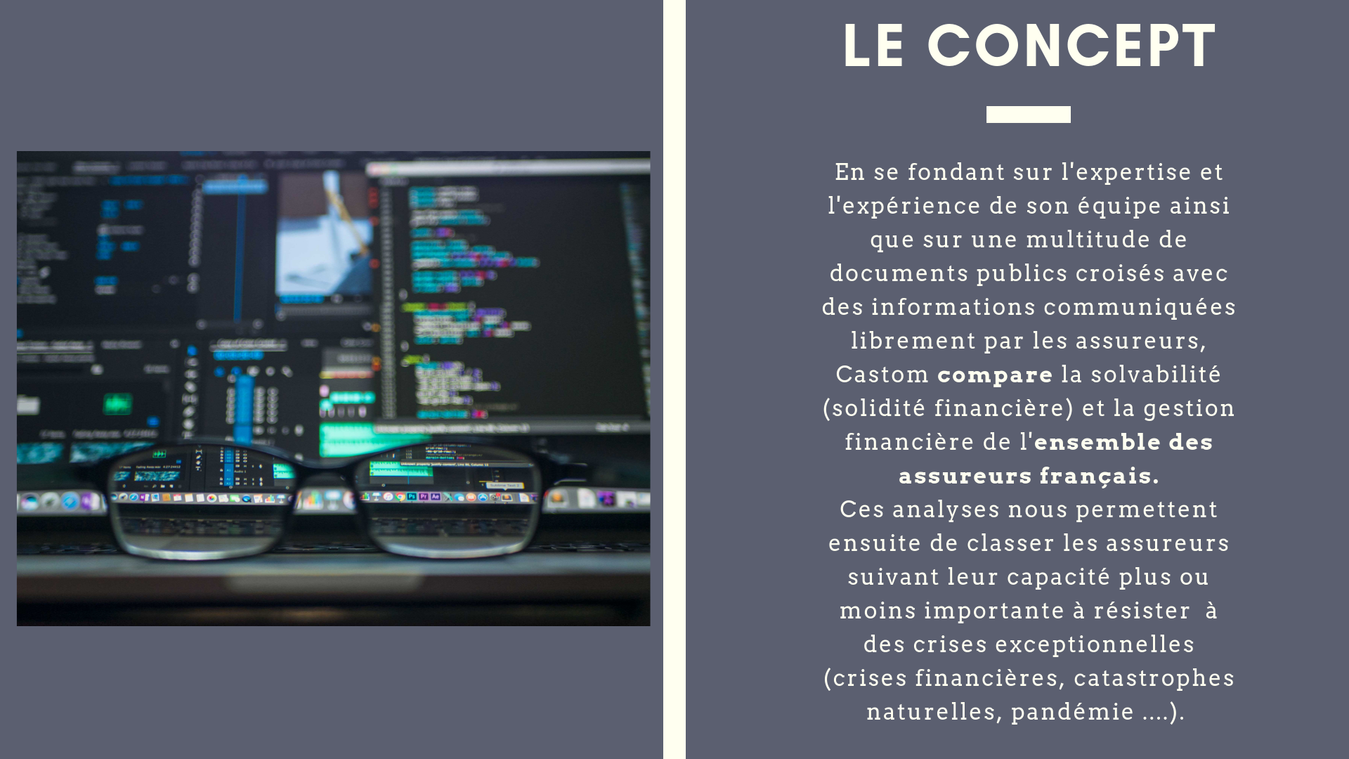 Le nombre de Briques de confiance©, attribué à chaque organisme d'assurance français représente uniquement un avis de Castom sur leur solvabilité et gestion financière. Cet avis donné à titre purement consultatif se fonde sur les documents publics (SFCR notamment en vertu de l'article 355-5 du Code des assurances) des organismes d'assurance, sur certaines informations transmises volontairement par ces entreprises à Castom ainsi que sur des articles ou communiqués de presse. Ces informations ne sont pas auditées par la société et sont donc considérées comme vraies et représentatives de la réalité en particulier des risques encourus et des fonds propres.